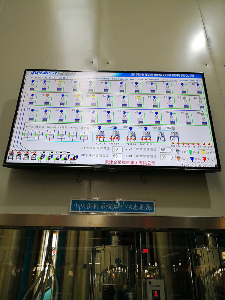 La función principal del control central es controlar las operaciones de recolección de polvo, transporte de materiales y emitir alarmas durante la producción de plásticos. El control central es fácil de operar y tiene una baja tasa de fallos.