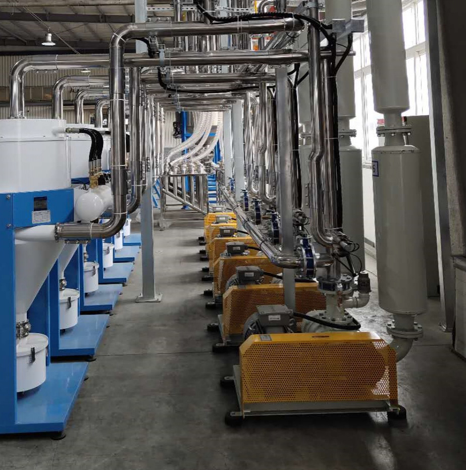 El generador de vacío utiliza ventiladores de alta presión para generar vacío para el transporte de materiales, garantizando el transporte y suministro continuos de materiales.