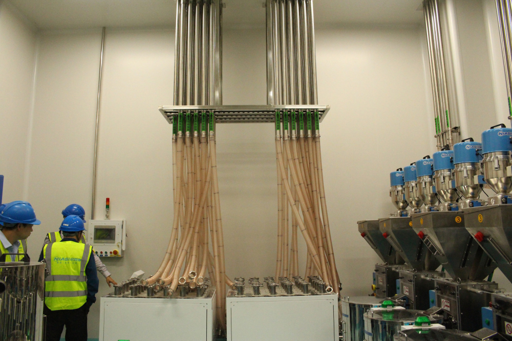 La estación de selección de materiales se encarga de la distribución de materiales en el sistema de transporte centralizado y en caso de que un error ocurra durante la alimentación se activará una alarma.